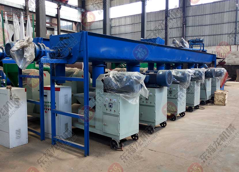 木炭機生產線生產原理:木炭機是把等經木屑粉碎機粉碎成10mm之內的顆粒狀,經烘干機烘干成型后放入炭化爐進行炭化的機器。該木炭機生產的木炭密度大、體積小、可燃性好,可替代薪柴及燃煤。該產品尤其適用于北方地區秋冬燒炕取暖、大棚升溫或作普通生活燃料。木炭機全套設備包括制棒機、炭化爐、烘干機等設備組成。木炭機生產流程:物料粉碎后進行烘干再用制棒成型機對物料成型后經過炭化處理.主要設備有:粉碎機,烘干機,制