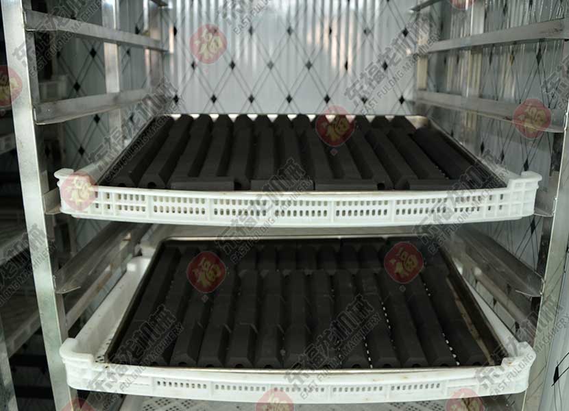 無煙燒烤炭的制作方法:首先需要將炭粉(或煤粉)與粘合劑按照一定的比例進行融合,需通過輪碾攪拌機進行加水攪拌,使其物料的水分達到40%左右;其次將攪拌均輪的物料倒入炭棒機(炭棒機分為臥式和立式,臥式為擠壓式炭棒機、立式為液壓或沖壓兩種炭棒機),通過炭棒機的工作原理加工各種形狀的炭棒,比如菱形、梅花形、圓柱形等等,特別強調的是炭棒的形狀是取決于炭棒機的模具,模具可以定制加工;最后將加工好的燒烤炭棒(注