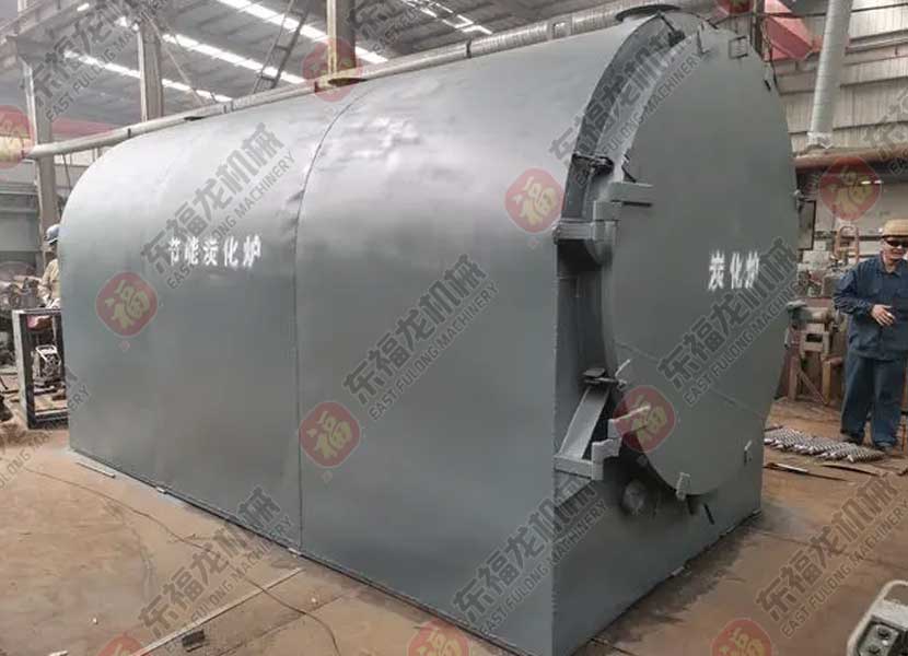 臥式炭化爐炭化木材大致過程是什么:1.將炭化爐放置在水平地面;2.炭化原料放入炭化爐內,關緊爐門,防止漏氣;3.炭化爐底部燒柴加熱排濕;4.排濕后,原料進行干餾炭化煅燒階段;5.冷卻出爐。新型炭化爐的型號大小很靈活,占地面積小,不用電,對廠房要求低,裝料的時候打開側面的爐門,可以人工裝料,比起土窯的空間來說,機制炭化爐工作環境要好,裝料和出炭都比較方便。裝料完畢之后就可以關上爐門,然后在底部的燃燒